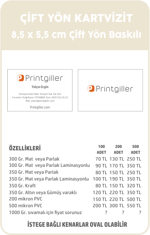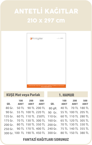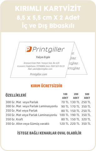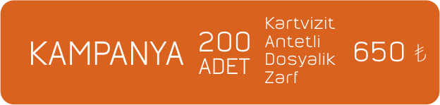 Kartvizit - Broşür - Antetli - Zarf - Dosyalık - Bloknote - Ajanda - Sunum Dosyası - Kitapçık - Kişiye özel Defter - Kartela - Davetiye - Paspartu - Cutout - Ambalaj v.b.